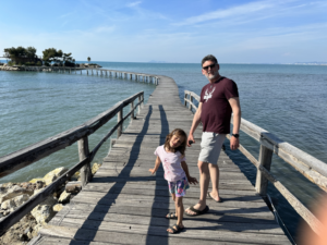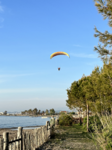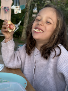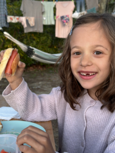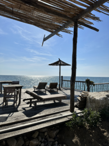 Ein ausgiebiges Frühstück mit Blick aufs Meer – Urlauberherz was willst Du mehr? Zwar bröselt das albanische Brot genauso wie das Brot aus Montenegro, aber egal. Wir genießen die Einsamkeit, den Blick und uns. Bei dem strahlenden Wetter und aufgeheizt von der Sonne schälen wir alle unsere Astralkörper in Neoprenanzüge und schwimmen eine Runde, auch wenn das Meer noch ganz schön zapfig ist zu dieser Jahreszeit. Außerdem ist heute Wäsche waschen angesagt, auch wenn die Waschmaschine noch genauso im Winterschlaf ist, wie die komplette Infrastruktur. Selbst im örtlichen Minimarket gibt es nicht mal ein Eis für Eva, was der Stimmung aber keinen Abbruch tut. Die Hängematte hängt, die Außenküche steht und wir haben endlich einen Platz, der der legendären Paella würdig ist. Doch abends kommt die kleine Maus nicht zur Ruhe, all die Ereignisse müssen erst einmal verarbeitet werden und so sitzen wir noch lange in Decken eingekuschelt am Meer, schauen den Blinkwürmchen zu, die eher blinken als glühen und auf die Lichter zur Insel und der fernen Stadt. So findet sich Zeit für ein erstes Résume, was uns betrifft.