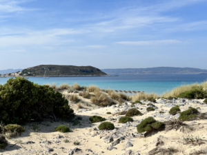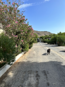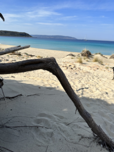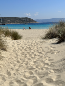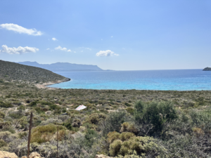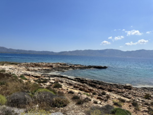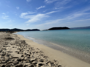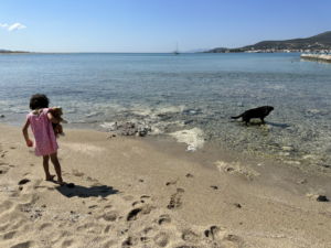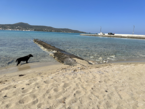 Für den Abend sind wir gestern von einer sehr netten Dame in eine Strandbar Namens Mylos eingeladen worden, wo es heute Abend ab 20.00 Uhr Livemusik geben soll. Die Bar soll auch nur 500 m am Strand entlang entfernt sein. Am späten Nachmittag machen sich also Michael, Eva und Luna auf die Suche nach der Strandbar, hatten aber keinen Erfolg. Keine Strandbar weit und breit.