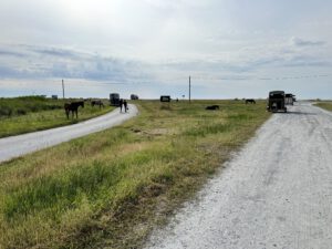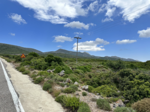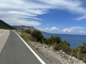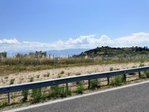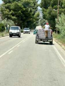 Zurück am Bus merken wir ein erstes kleines Hüngerchen und gehen kurzerhand zur Camping-Taverne, wo wir uns mal wieder mit Souvlaki und Bifteki zu einem großen griechischen Salat versorgen. Wir wundern uns, dass die Horseclubs noch gar nicht in Abreise-Aktivitäten verfallen, denken uns aber nichts weiter dabei.