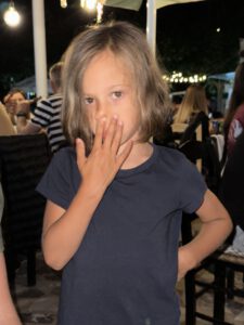 So vergeht der Nachmittag mit einem Schläfchen für Susanne, einem schönen Spaziergang für Eva, Michael und Luna und gemeinsamem Basteln, Spielen und dem einen oder anderen Gläschen Malamatina für uns. Abends gibt es noch Pfannkuchen für Eva während mit Einbruch der Dunkelheit die Horseclub-Party in die zweite Runde geht.