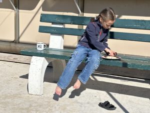 Eva gibt noch ein Ständchen der Eiskönigin voller Innbrunst auf der Promenade bevor die Nürnberger Rostbratwürstel für gute Abendstimmung sorgen. Mal sehen, wo es uns an der Küste weiter treibt? Auf jeden Fall geht es ab Morgen >> hier << weiter.