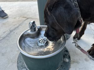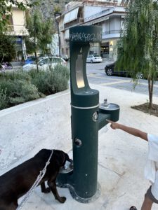Tatsächlich haben wir am Vortag bereits den ein oder anderen Laden ausgemacht und schlendern gemütlich durch die Stadt. Ganz beeindruckt sind wir von den öffentlichen Trinkwassersäulen bei denen sowohl eine Flasche abgefüllt, als auch direkt getrunken werden, vor allem aber auch ein Napf für Hunde direkt befüllt werden kann.