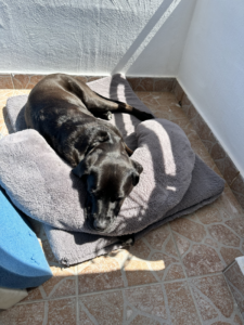 Draußen ist es – obwohl anders angekündigt – ein wunderbar sonniger Tag. Nur wenige Wolken ziehen über den sonst azurblauen Himmel. Eva steht bald darauf auch auf und damit ist der Tag eingeläutet. Ein kurzes Frühstück weckt die Lebensgeister, aber klar ist, heute wird gefaulenzt. Dank der rührigen Gastgeberin wurde unsere Wäsche gestern Abend noch gewaschen und hängt am Wäschetrockner, Lunas Hundebett ist immer noch nicht ganz trocken, also gilt es den Tag – mit was auch immer – zu vertrödeln. Uno spielen, dank Smart-TV im Zimmer zwei Folgen Anna und die Wilden Tiere schauen, Wutausbrüche von Eva ertragen, die bei drei Mitspielern nicht gleich zwei Aussetzer im Uno legen darf, etc.