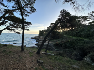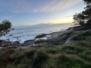 Da der Tag wirklich wunderschön ist und unsere Gastgeberein Sabina uns einen tollen Spazierweg inkl. Restaurant-Tipp gegeben hat, beschließen wir am Nachmittag einen kurzen (dauert nur 1 Stunde, ist ein Rundweg durch den Wald!) Spaziergang zum Restaurant „Ibiza“ mit Meerblick zu machen. Luna muss sowieso raus und das Wetter ist so toll, also schnell ein paar Sachen in den Rucksack gepackt, eine kleine Brotzeit dazu und los geht’s.